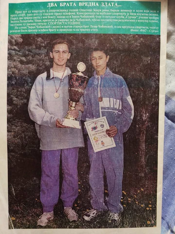 Као основац и средњошколац био сам спортиста, члан атлетског клуба Сурчин. У почетку, као и код вина, рекреативац, а затим и шампион бивше Југославије, па и репрезентативац у јуниорској конкуренцији. 1999-е, у тој ратној години када су ракете и бомбе падале по Србији, Београду и мом Петровчићу, ја нисам спавао у подруму него сам се спремао за првенство Југославије и изборно такмичење за првенство Балкана. Тај мој сремачки инат ме је и довео до те моје прве титуле првака и довео до дреса са државним грбом. Месец дана након краја рата, у Грчкој освајам 4. место на Балкану у дисциплини 3000 метара са препрекама. Касније сам још два пута обукао дрес репрезентације и нажалост у 20. години због повреде лигамента завршио каријеру…